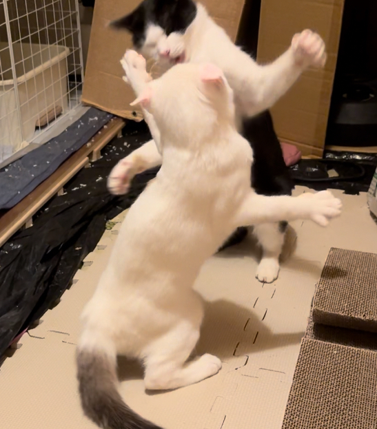 いつも1食につき20g食べているシンバですが、昨日は半分の10gしか食べられませんでした。しかし、今日は1回で15g食べられるようになり、少しずつ食欲が回復しています。体重も20g減ってしまいましたが、元気に走り回り、アテネと一緒にいつもの大運動会をしているので、今は様子を見ながら気圧の回復を待ちます。