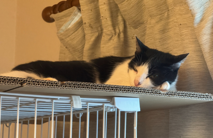 アテネは朝食後、そそくさと高いところに上って寝始めました。アテネの鳴き声がか弱くて心配でしたが、食欲もあり、水も飲んで、排泄もできているので大丈夫だと思います。ただ、いつものアテネのピンクの鼻が少し白っぽいのが心配です…