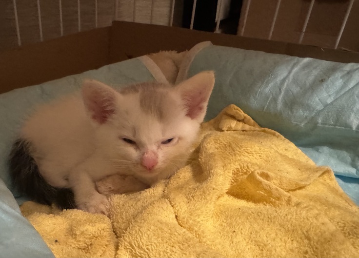 シンバを保護してから約1週間後、てんかん発作がシンバを襲い始めました。合う薬が見つかるまでは、シンバは起きていても弱々しく、難しい表情を浮かべていました。
