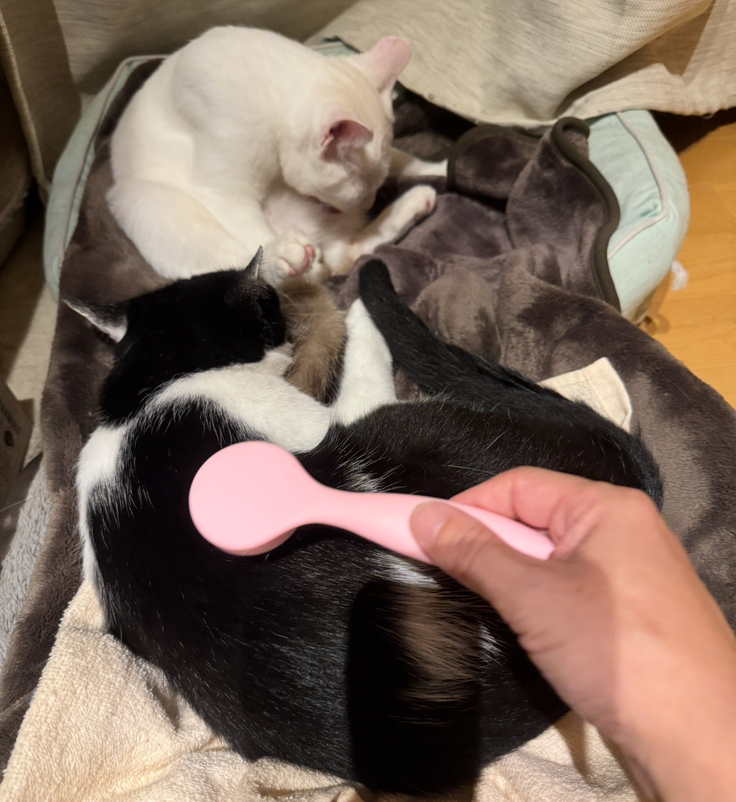 アテネのお腹が驚かないように、食後はブラッシングタイムを設けることにしました。これで食後に走り回ることがなくなり、リラックスして過ごせるため嘔吐も防げます。