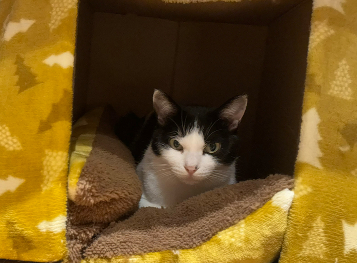 気温が下がり始めてから、アテネはこたつ風ベッドを使い始め、とても気に入ったようで、涼しい時は中に入ってくつろいでいます。