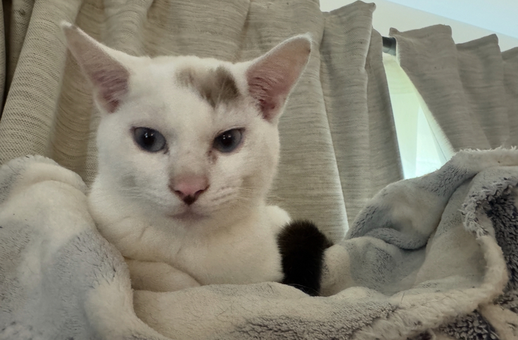 その病院には保護された小さな子猫がいて、シンバと同じ月齢の、白に黒い尻尾が特徴の可愛い女の子でした。先生は「白血病陽性で、もらってくれる方に申し訳なく、死を待つしかない。」とお話しされていました。その子の可愛い姿が、心に焼きついています。
