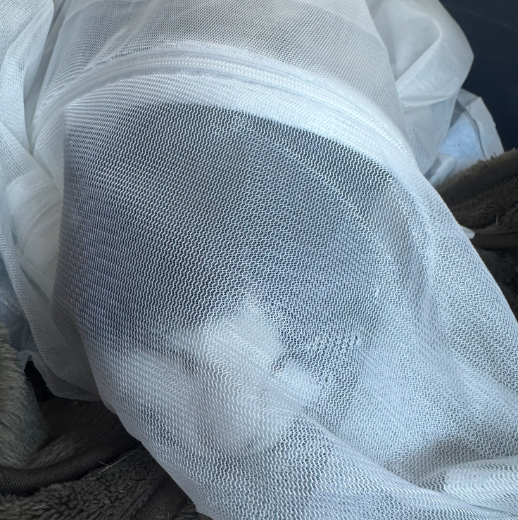 念の為、アテネには洗濯ネットに入ってもらいました。アテネは食いしん坊なので、ケージに口の大きい洗濯ネットを入れて、おやつをちらっと見せたら、自分から入っておやつを食べ始めてくれました!数回繰り返すと、「洗濯ネット=何か美味しいものがもらえる」と理解してくれたようで、無事に洗濯ネットに収まりました。ヨシヨシと撫でながら洗濯ネットを閉めて、そのまま病院へ向かいました。ネットの中で暴れることなく、ジッとしていました。