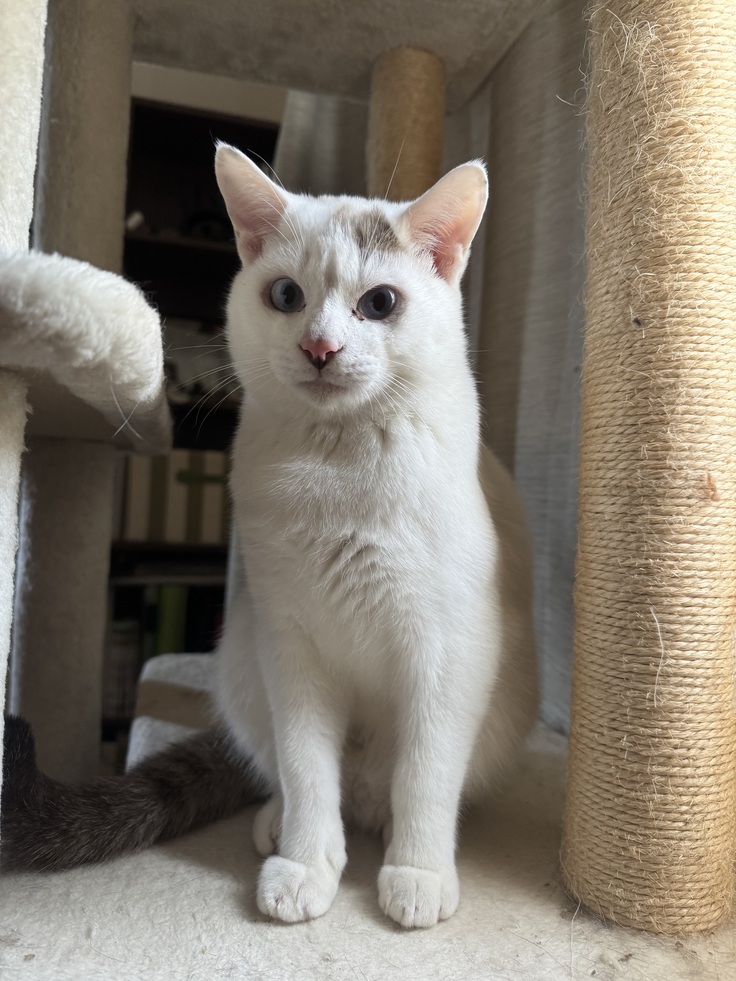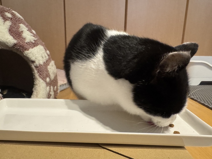 スモーキーを迎えた当初は、「そんなに急いで食べなくても大丈夫。誰も取らないよ」と何度も話しかけたことを思い出します。今では少しずつ落ち着いて食べられるようになったので、アテネももう少しゆっくり食べられるようになるといいなと思います。本当に猫語が話せたらどんなにいいだろうと思います。