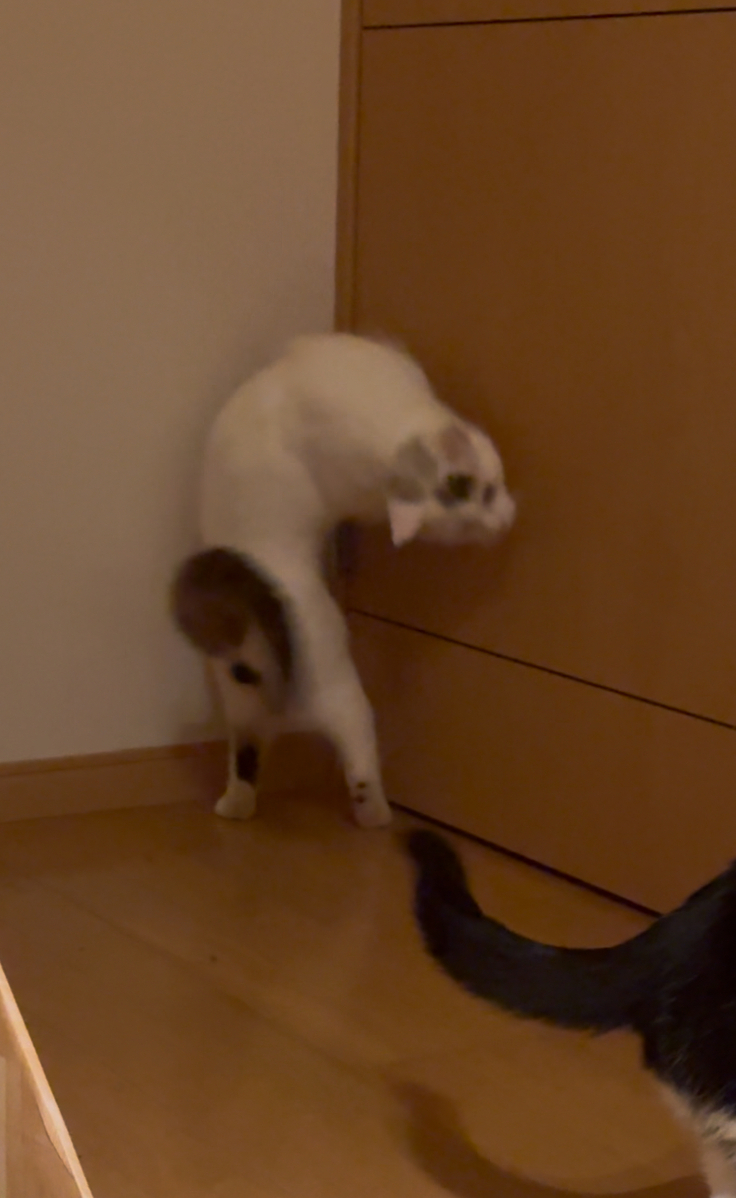 ドアの横の壁に行き、前足を壁について伸びをした後、ぐるりと頭を回す…それを何度も繰り返すようになったのです。