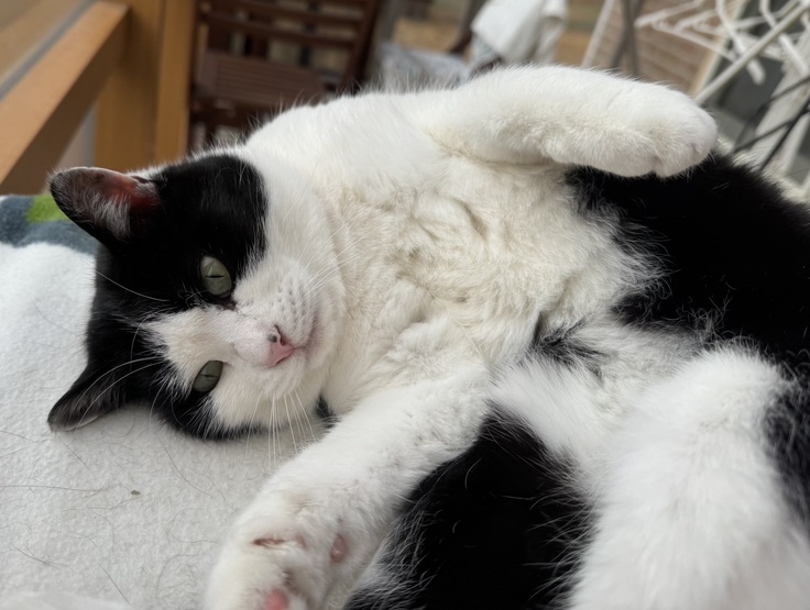 あっちにはアテネ、こっちにはシンバ…と、スモーキーのお気に入りの場所がすっかり占領されてしまいました。