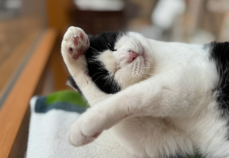 アテネは、元気にひとり遊びを楽しみ、お気に入りの寝床で昼寝をし、アテネのペースで暮らしています。