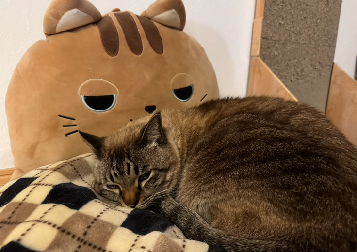 様子はいつも通り元気で、「あっちに走って、こっちに戻ってきて」と忙しそうにしていたり、好きなところで寝て、アテネと遊んだり、アッシュとプロレスごっこをしたり…。