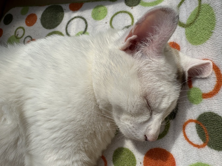 ご飯を自分のペースでゆっくり食べて、お気に入りの場所で寝ている姿は、本当に天使のようです。
