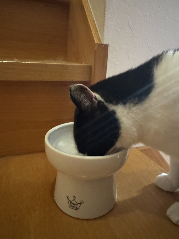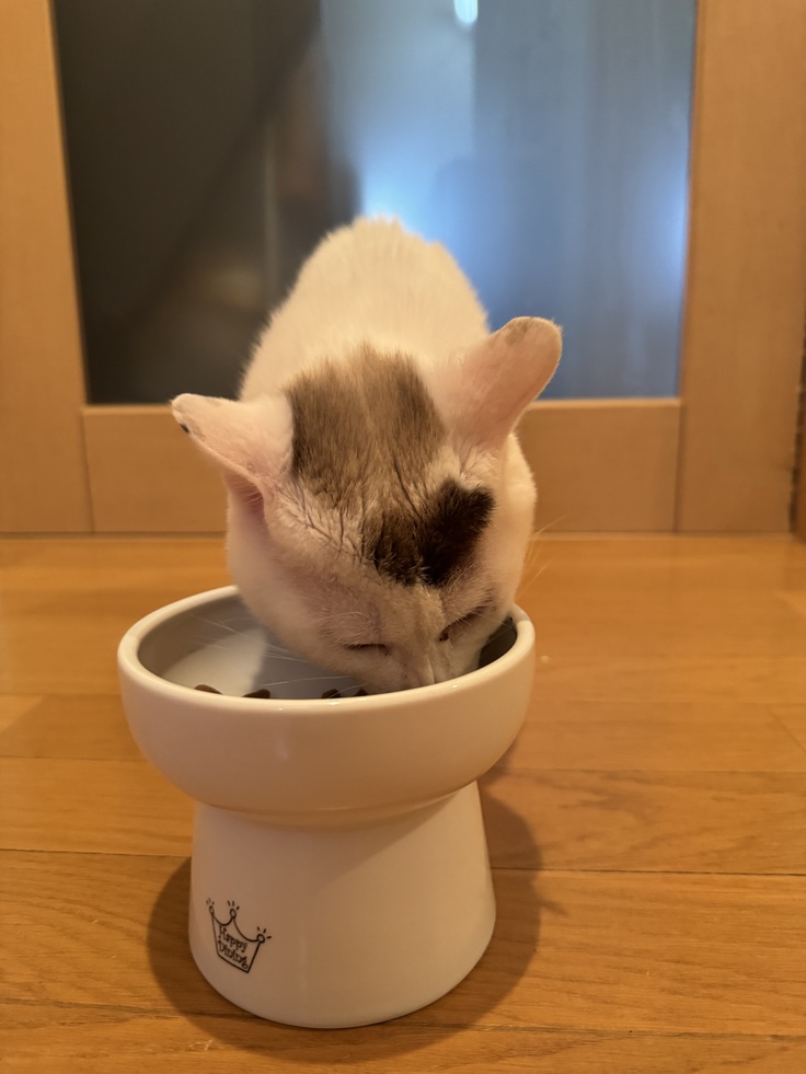 成猫用のドライフードが気に入ったようで、カリカリと音を立ててしっかり噛んで、美味しそうに食べています。子猫フードより食い付きが良く、ご飯の時間が近づくとおねだりするようになりました!