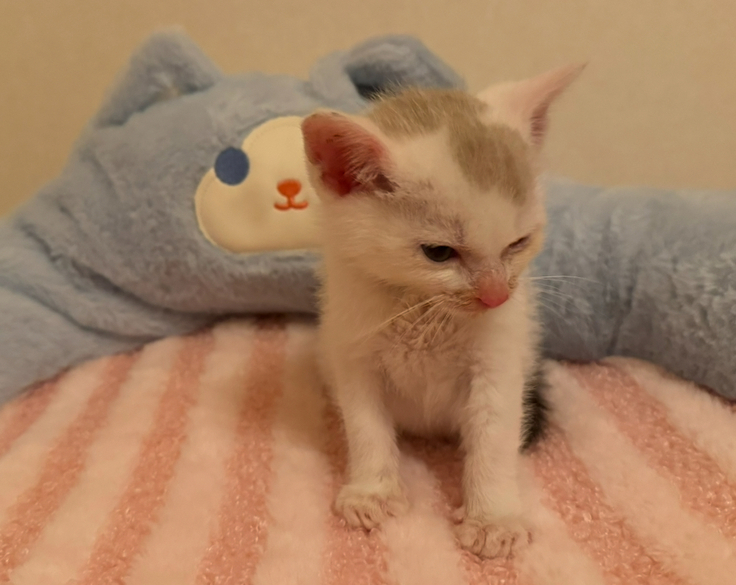 昨年の6月3日に2匹を保護し、そのわずか約1週間後の6月11日には、シンバが初めてのてんかん発作を起こしました。保護したばかりのシンバは、手のひらに乗るほど小さな体で、1日に何度も発作を起こしながらも、懸命に生きようとしてくれました。
