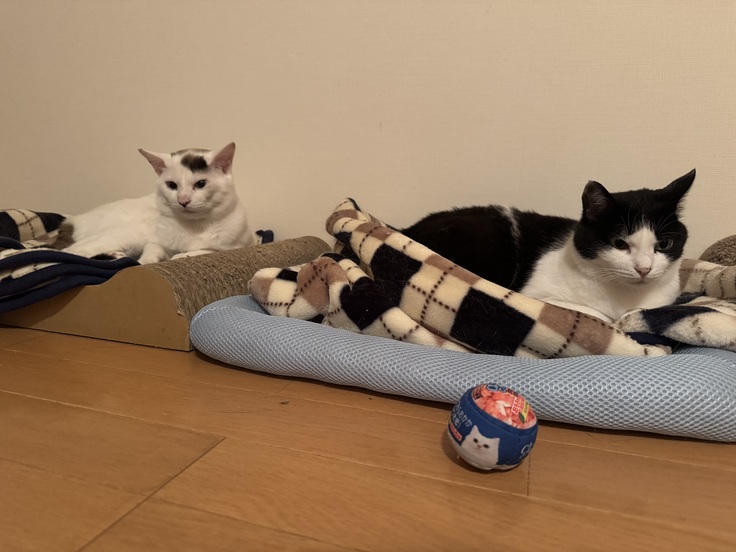 シンバは現在、眼振の様子を見ているところですが、2匹とも元気に過ごしています。
