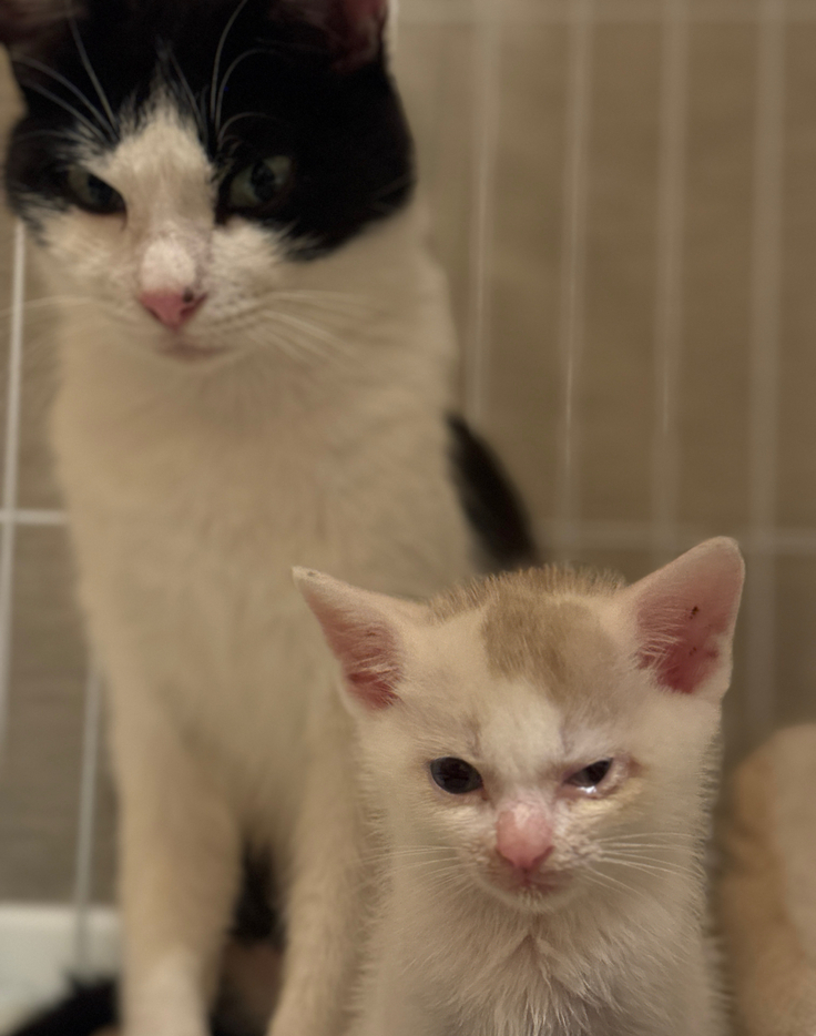 野良猫の母猫としては、育てることをあきらめてもおかしくないシンバの状態でした。アテネは諦めませんでした。