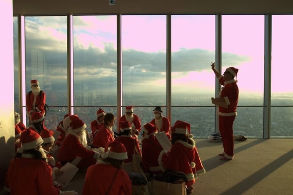 ハルカスから、プレゼントを届けるサンタたち