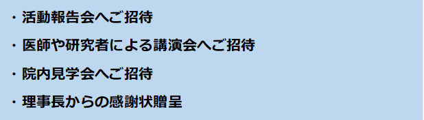 ②寄附者一覧掲載の活動報告冊子郵送※2※3