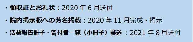 寄付者銘板完成のご報告と併せて2021年10月現在の