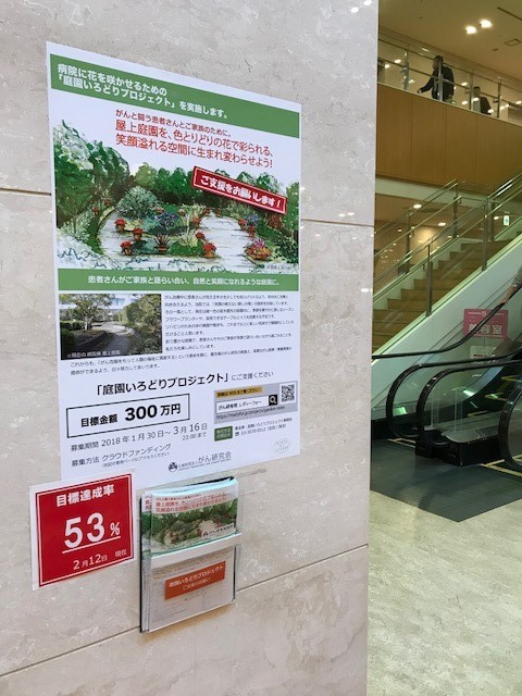 病院内で一番目立つ柱に貼った「ご支援のお願いポスター」に、「目標達成率」を追加で掲示してみました。