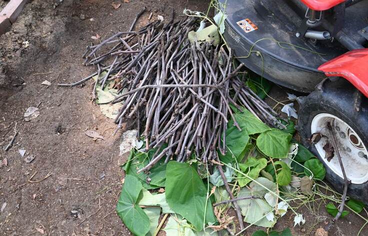 この日は背が高くなったガラミの剪定をしました。蔓がどんどん高く伸びていくので、ある程度まで伸びたら、今度は横に成長させるためです。