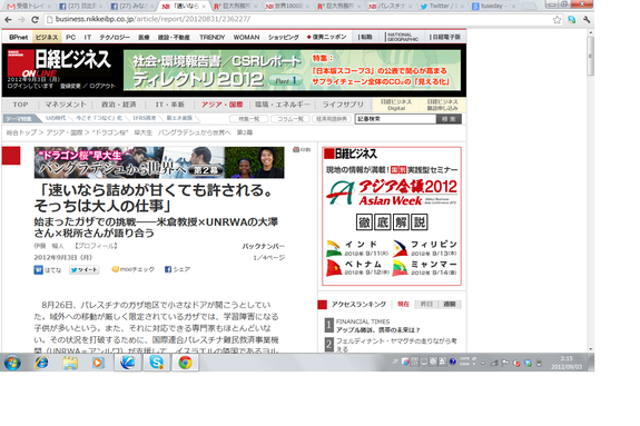本日の日経オンラインに米倉教授、大澤さん、税所のガザを囲む会レポートが掲載されています。ぜひ米倉教授の豪快なコメントをご覧下さい!