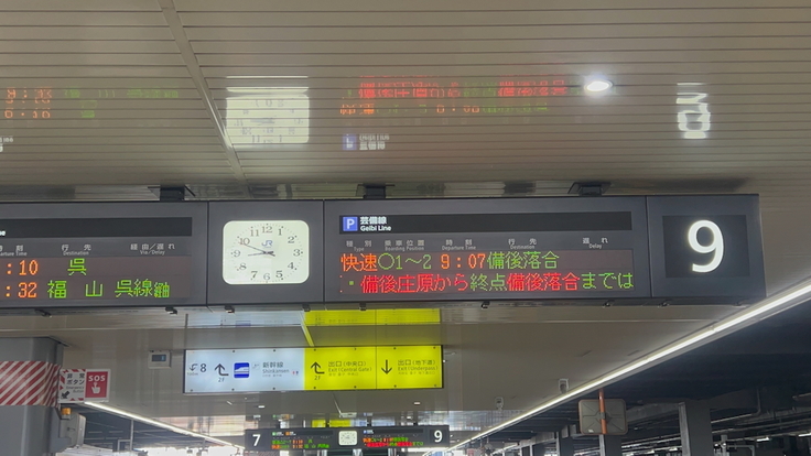 広島駅ホームの電光掲示板がの表示が滅多とない「備後落合行き」なので、