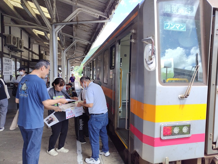 7月27日、東城駅で臨時列車を迎えるイベント 賑やかに開催、特製弁当も売り切れに