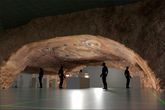 壁画窟の完成イメージです。バーミヤン東大仏の頭上に立ったような感覚で、復元した壁画をご覧いただけるようにしたいと思っています。