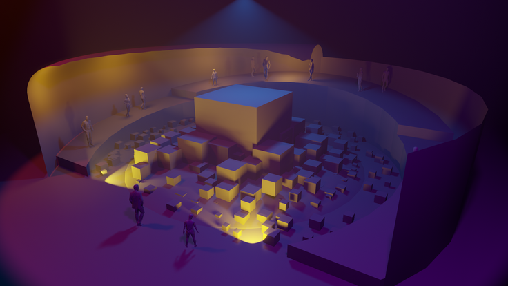 「過去と過去が繋がり合って今がある」今年の2研はこの想いをカタチにし、伝える、そして見た人に考えるきっかけとなるものを創り上げます。過去のその時その時に感じた複雑な感情やその繋がりを美術作品、照明、映像、音効、舞台等の技術を組み合わせることで表現します。同じものなのに、見る方向によって違って見える、体育館という大きな空間を活用した新しい2研の姿にご期待ください。