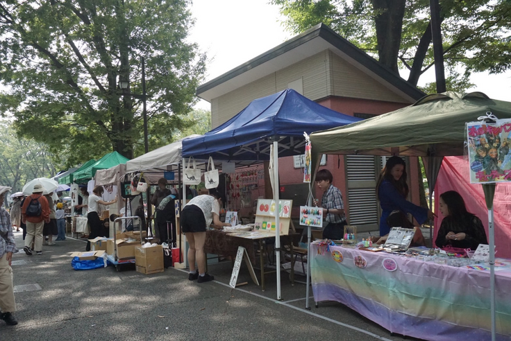 上野公園から藝大へつづく道沿いではアートマーケットを実施し、藝大生のつくった作品を販売いたします。