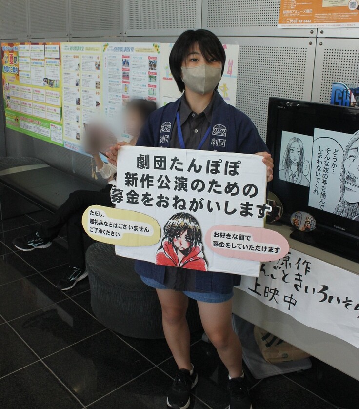 週に一回集まって活動しています) その「はままつ演劇クラブ」のこどもたちも、公演のお手伝いをしてくれた際にクラウドファンディングや募金箱の呼びかけをしてくれました。