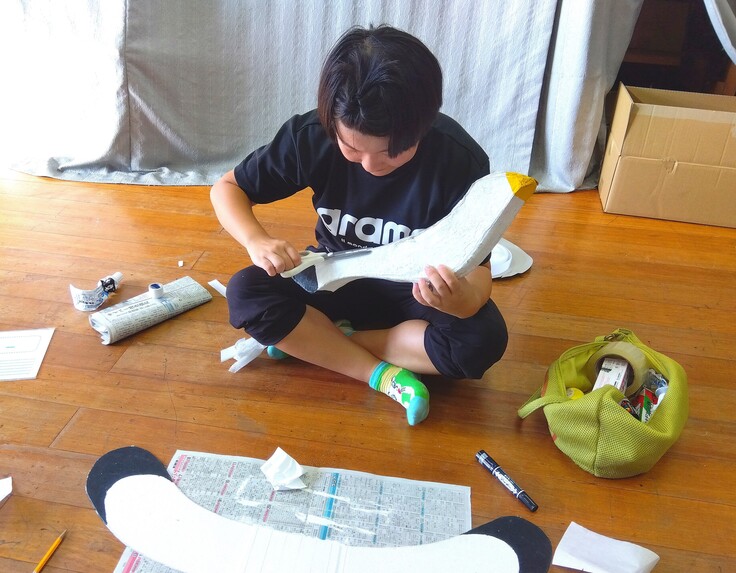 さて、本日は稽古終わりの劇団員が小道具の修繕をしている様子をお届けいたします。