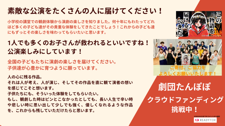 多くの皆様が、劇団たんぽぽを愛してくださり、応援して下さり、期待して下さっているということを強く感じました。本当にありがとうございます。