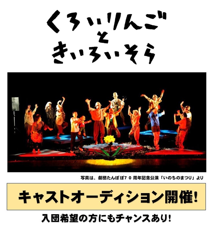 「くろいりんごときいろいそら」を一緒につくっていく仲間を、そして劇団たんぽぽをこれから盛り上げていく仲間を募集いたします。是非お待ちしております!