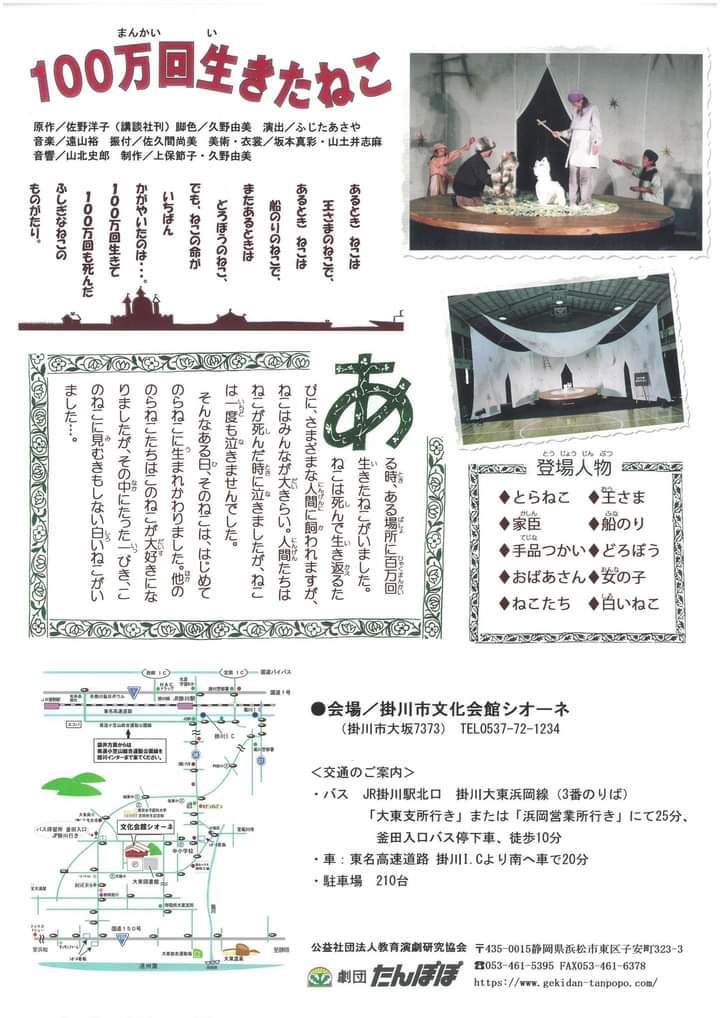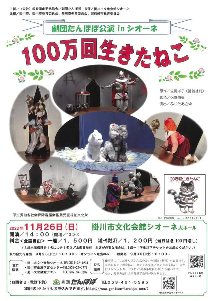 掛川文化会館シオーネで「100万回生きたねこ」を上演します!