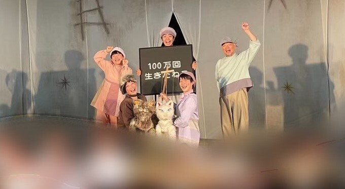 さて、本日のお知らせは公演のご案内です。劇団たんぽぽは、2023年11月26日(日)に掛川文化会館シオーネで、『100万回生きたねこ』を上演します!『100万回生きたねこ』は初演から今年で18年目のロングラン作品!様々なキャスト、バージョンで上演されております。今年の『100万回生きたねこ』は今年だけ。変わり続けながらも、変わらない面白さを是非劇場で感じていただけたら嬉しいです。メンバーは、「あやうし!ズッコケ探険隊」の出演のメンバーです。(下の写真は今年の6月の長崎の巡回公演の時の写真です。)