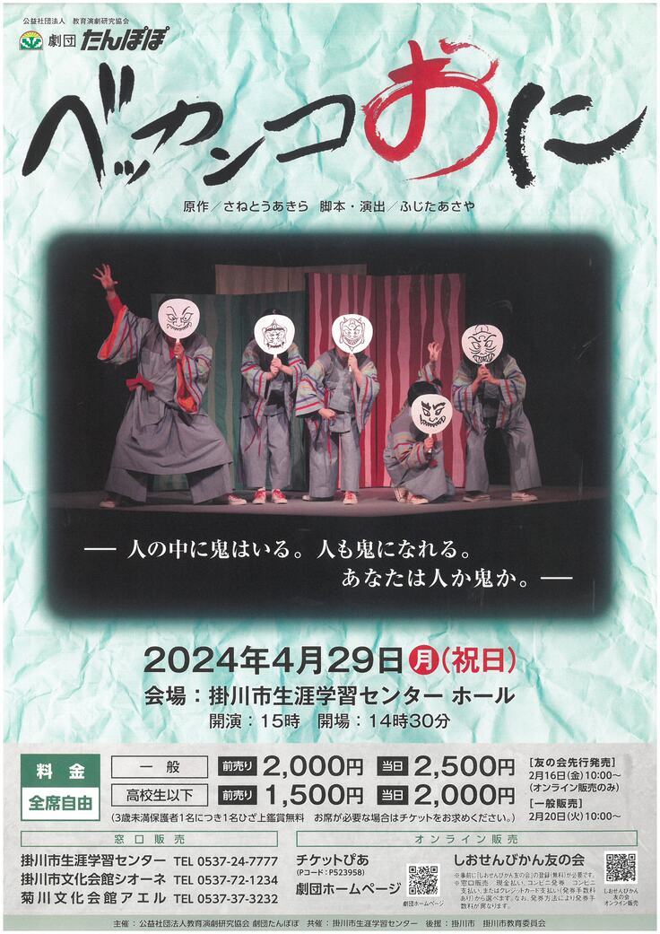 劇団たんぽぽ公演「ベッカンコおに」(2024年4月29日 掛川市で公演)