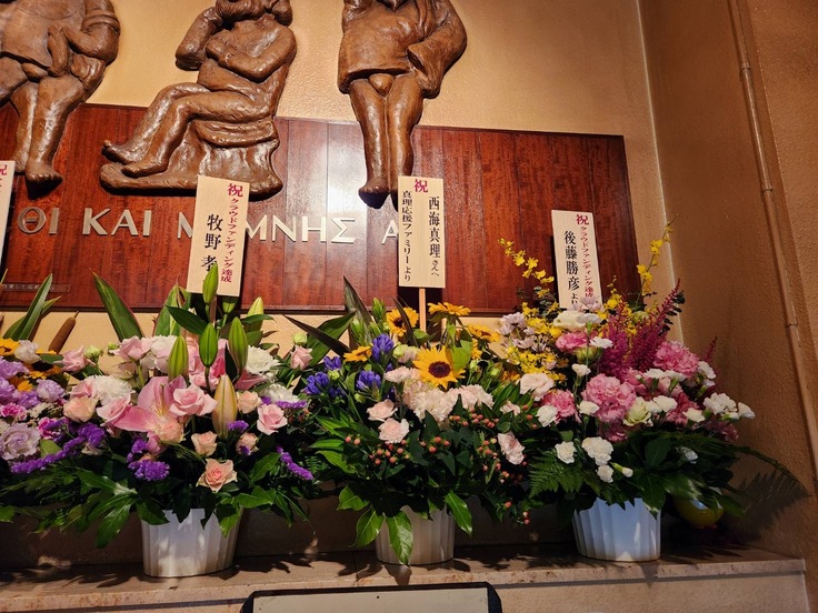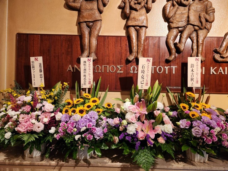 今回のクラウドファンディングで頂いたお花、お酒は劇場にて飾らせていただきました。