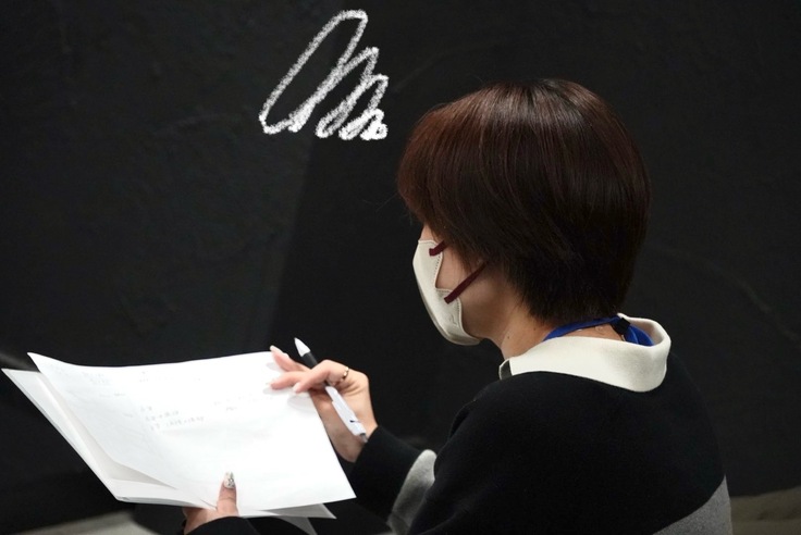 キャストに演技の質問をされるむらた