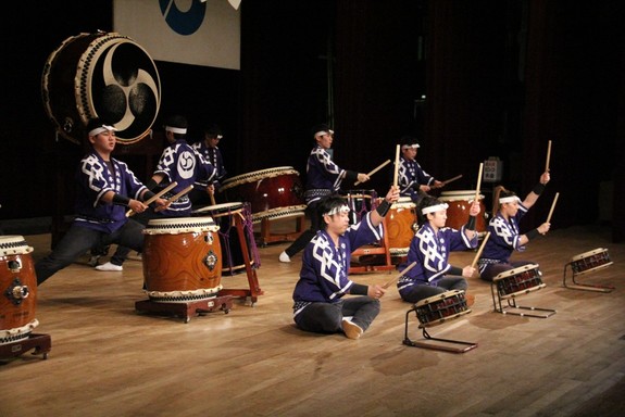 華やかな着物、かっこいい袴やスーツ姿の新成人の皆さんを前に「祝い太鼓」ということでサプライズ演奏をさせていただきました。