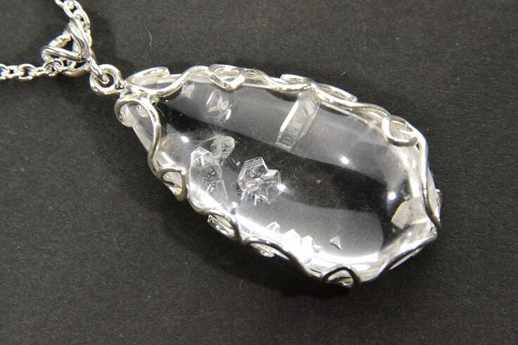 使用する貴石は、都度、仕入れが可能なものを。フレームワークなども細かく、デザイン段階からご参加いただきます。上の画像は3cmのエンジェルラダークォーツをアラベスクフレームに石留する直前。上の画像は、クォーツインクォーツです。