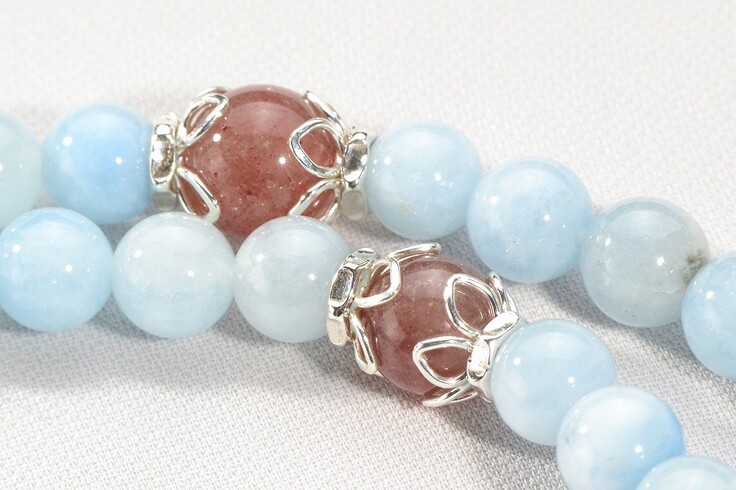 固くもろい半貴石をつないで数珠にした時に、石同士のクッションにもなることは特筆できるかもしれません。