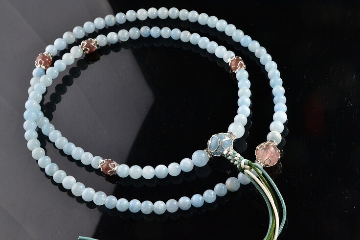 ▼本格的なフルサイズの 華数珠(はなじゅず)アクアマリン