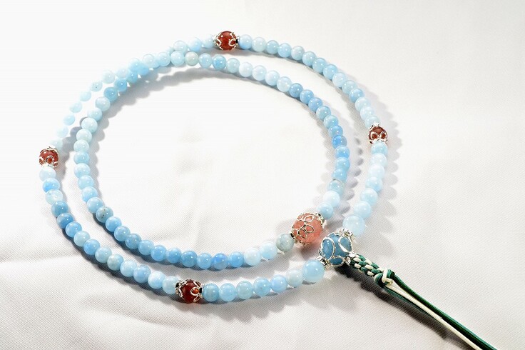 また数珠は、仏教の法具という一面だけでなく、人から人への想いを託すものでもあります。たとえば、成人のお祝い、結婚の機会にお念珠を贈ったり交換する習わしがあります。 これらのことからも、数珠には法具だけではない贈り物のような顔があります。