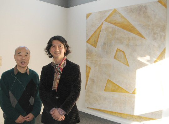 (2011年すどう美術館での朝比奈賢展、後ろは「Monument 3.11」)