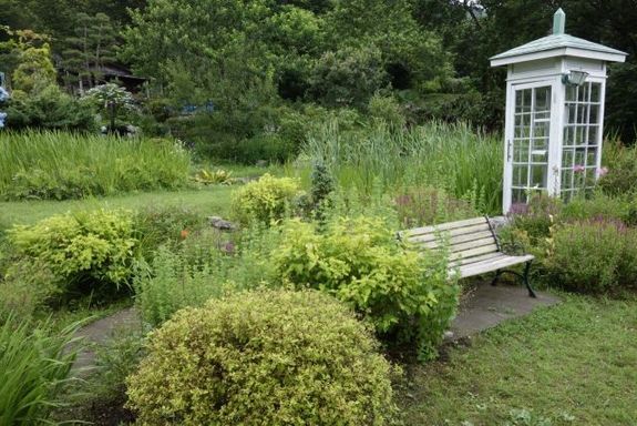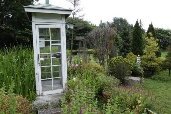 電話ボックスに入ると不思議な気持ちになります。ひと1人が立ってやっと入れる空間。しかし、その閉じられていることが外部を遮断し、それまで庭を見ることに行き来していた視線が自分の心に向かっていきます。そして、不思議な落ち着きを感じるのです。急に静かな自分の時間が持てたような感覚です。