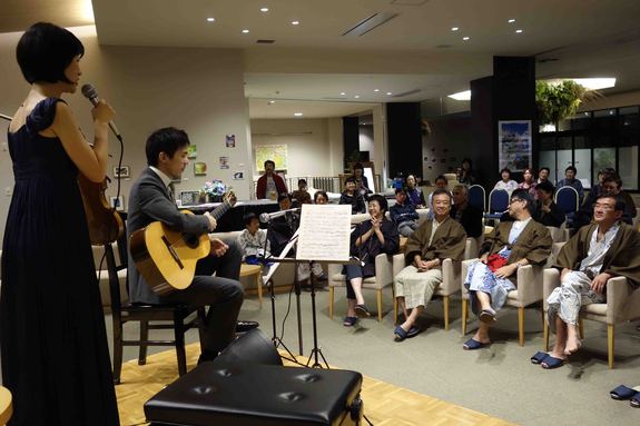 午後5時と8時からの2回、花ホテルのロビーにて、大鹿由希さんのバイオリンと橋爪晋平さんのギターによるコンサートが開かれました。とても豊かな時間を過ごさせていただきました!