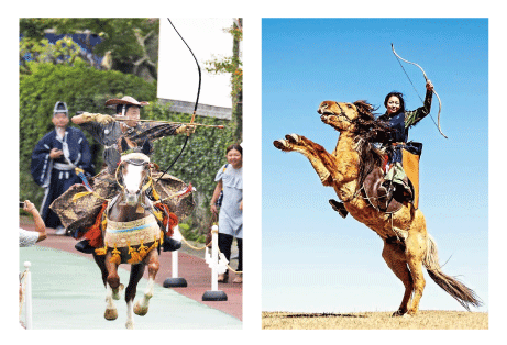 毎年、飯盛神社にて五穀豊穣、武運長久、無病息災を祈って奉納されている流鏑馬にモンゴル馬術協会が参加する。13世紀のモンゴル帝国の軍事力の中心だった弓術と馬術の組み合わせであるモンゴル馬術のパフォーマンスを日本の流鏑馬とともに奉納し、両国の馬術文化の交流を深める。