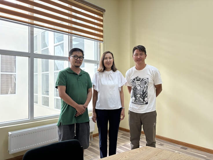左から、監督 T. アマール氏、在福岡モンゴル国名誉領事館の事務局長P. トヤー氏と国立文化財センターの文化財保護研究者B.アムガランバート氏