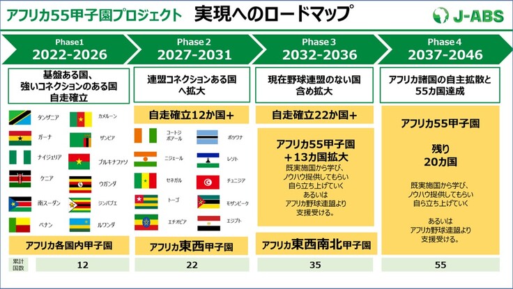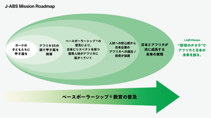 このように、J-ABSではアフリカにおける甲子園の開催を推進していますが、ここを出発点として、我々のミッションである「 “野球のチカラ”でアフリカと日本の未来を創る。」に向けた大きなロードマップを実現していく予定です。