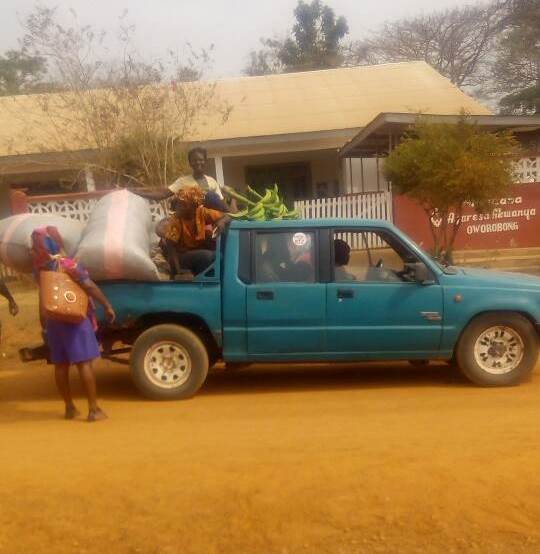 村から村へと移動する交通手段としては乗り合いタクシーというものがありますが、数が少なく、運転手を入れて5人乗りのところに、6~8人が乗ることもあります。
