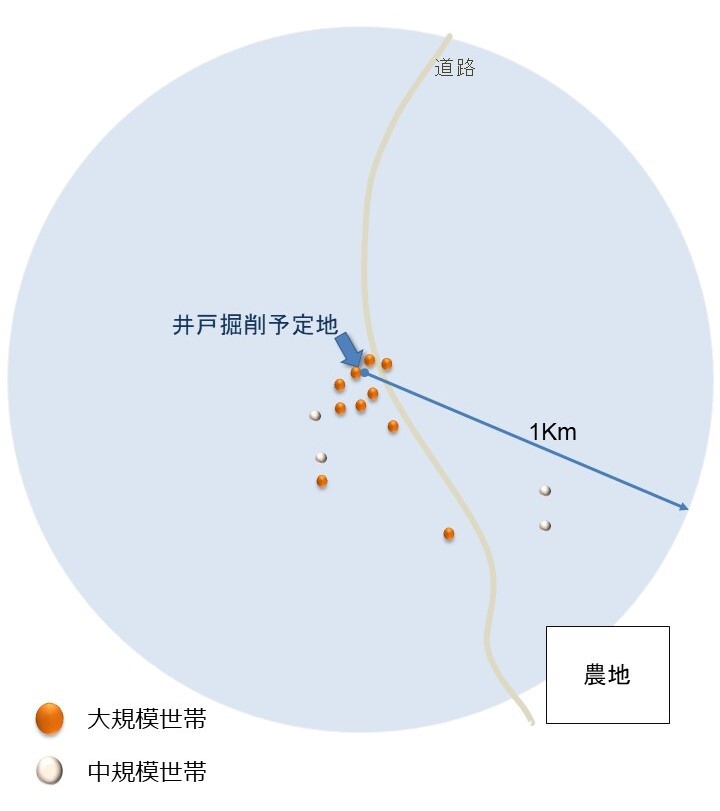 コミュニティの全体像と井戸の建設による影響圏(イメージ)